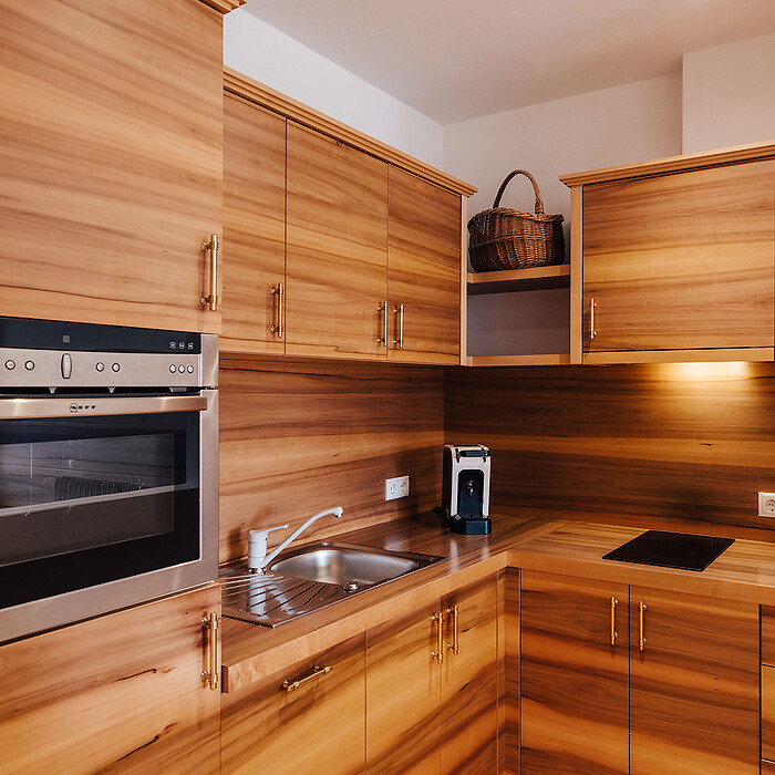 Chi lo desidera, può preparare i suoi piatti preferiti al proprio ritmo nella cucina completamente attrezzata del nostro hotel con appartamenti in Alto Adige. Il pane fresco del mattino viene consegnato direttamente dal Hohenwart o dal panettiere accanto. E deliziose specialità italiane o un raffinato spuntino dell'Alto Adige possono essere preparati rapidamente, con ingredienti regionali dai negozi di fattoria nel villaggio o dal mercato settimanale di Merano.